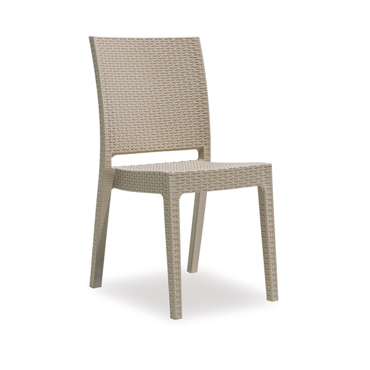 Polipropilen ve cam elyaf karışımdan gaz enjeksiyon sistemi ile üretilen nice sandalye, doğal rattan efekti ve dokusuyla hem iç hem de dış mekan kullanımı için uygun bir üründür.