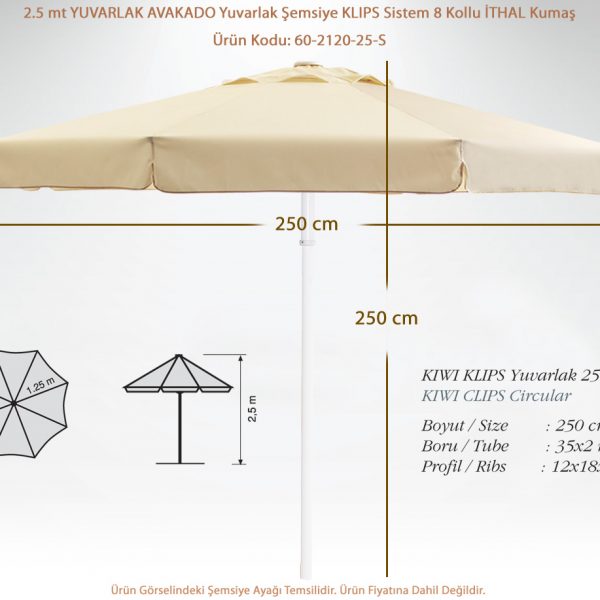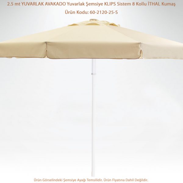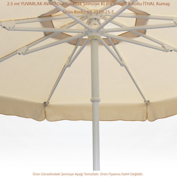 İspanyol malı ithal şemsiyelik kumaş. (5 yıla kadar renk solmazlığı, %97 UV filtresi, anti alerjik, çürüme küflenme yapmaz.)