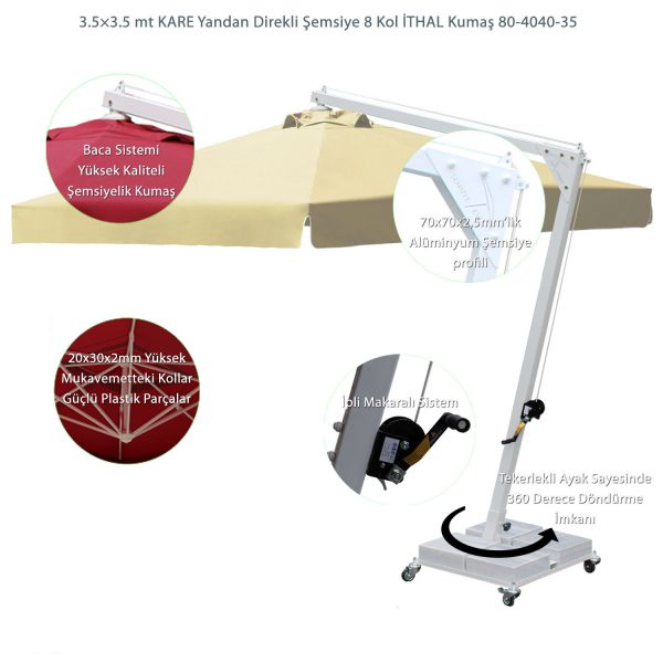 Şemsiye Yandan Direkli 3.5 mt Kare